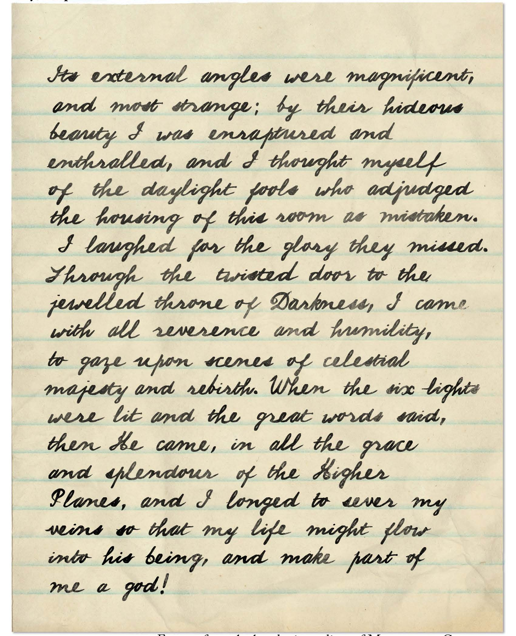 Журнал изучает Клементина Блэкуид. Теряет 2 санити, но слова не складываются в что-то удобочитаемое. Книгу изучает Иоганн. Кажется что кожа пальцев соединена с кожей книги. Спустя пару минут, замечает, что часть мебели перевернута, и Иоганн не помнит сколько это продолжалось. Часть прочитанного навсегда остается.