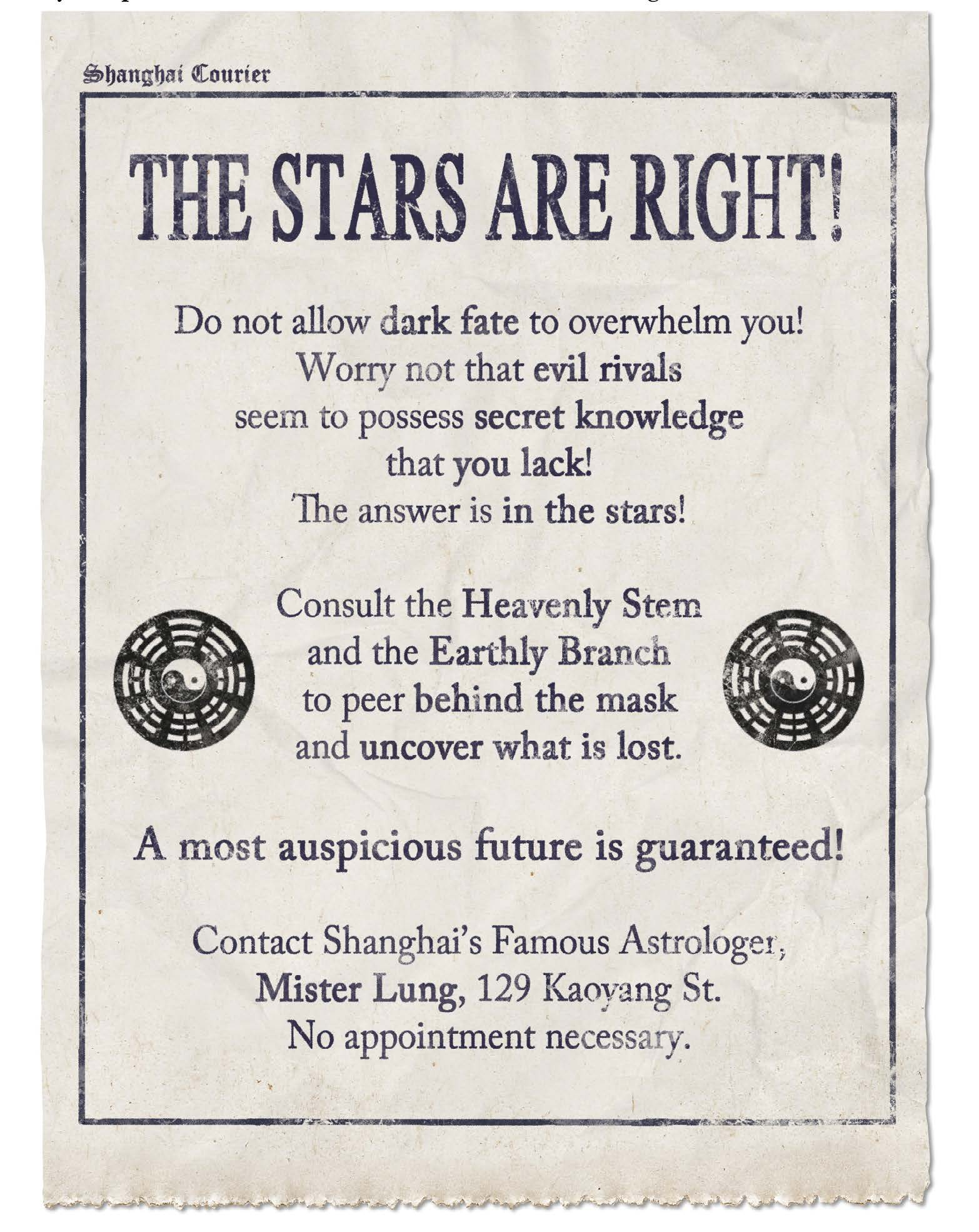Иоганн едет по адресу в объявлении. Это французская часть, ближе к старому городу. Осматривает улицу, и там к сожалению все вывески по китайски. Но замечает астрологические символы. Во вторых вдали я вижу большое пространство как сторадж фасилити. И там несколько вооруженных китайцев стоят на входе.